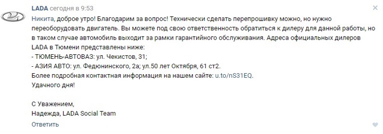 Ответ АВТОВАЗа предоставил гость Сергей: